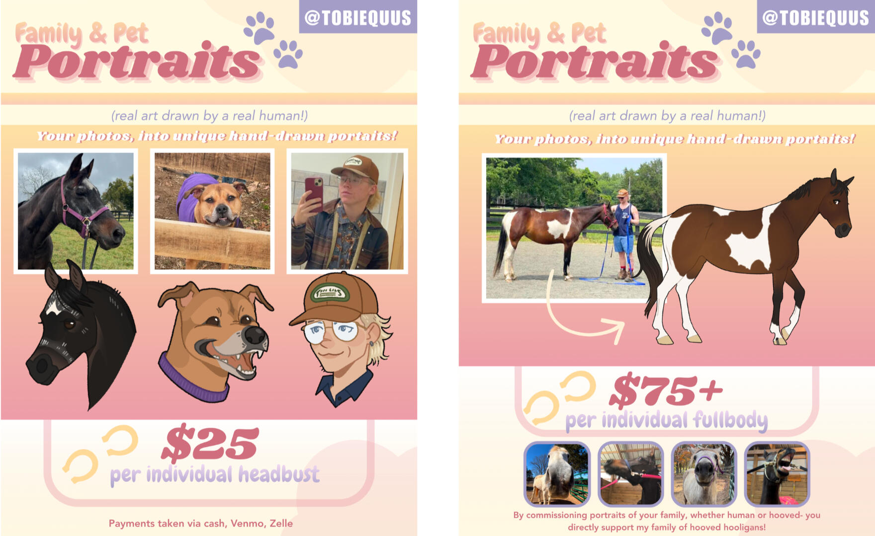 Besides horses, doing art has been the other constant in my life. I've been doing art for as long as I can remember, having received multiple awards, including some awards on the national level for my artwork growing up. Digital art called to me from a young age, MSpaint used to be my home.Nowadays, art has been finding it's way back into my life as I now offer art commissions. Naturally, drawing horses has been one of my favorite things, and now I get the privilege to create artwork of other people's horses and animals.